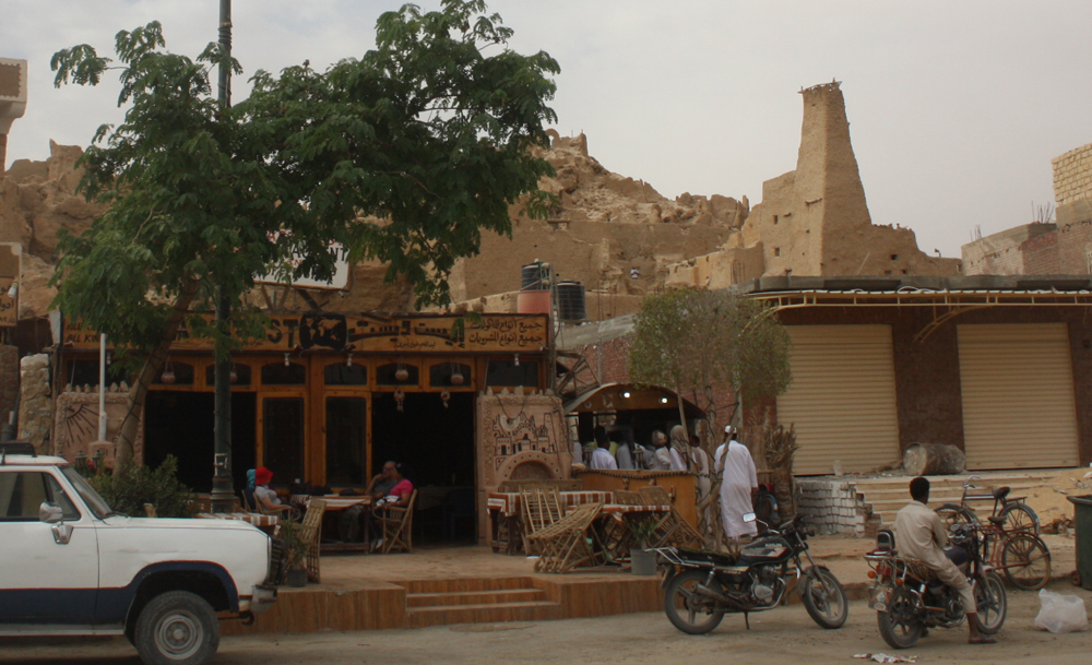 we headed direct to a hotel of the drivers choosing. first I said" I need food and refreshment I had not eaten since breakfast in Klaus'es apartment at 6.00, as we past a coffee shop, stop here, I said. as I was sitting in the coffee shop I saw the sign El-Kelany hotel. and told the driver OK now I see the kelany it has A fine view of the Shali Mountain fortress and open views from the roof .